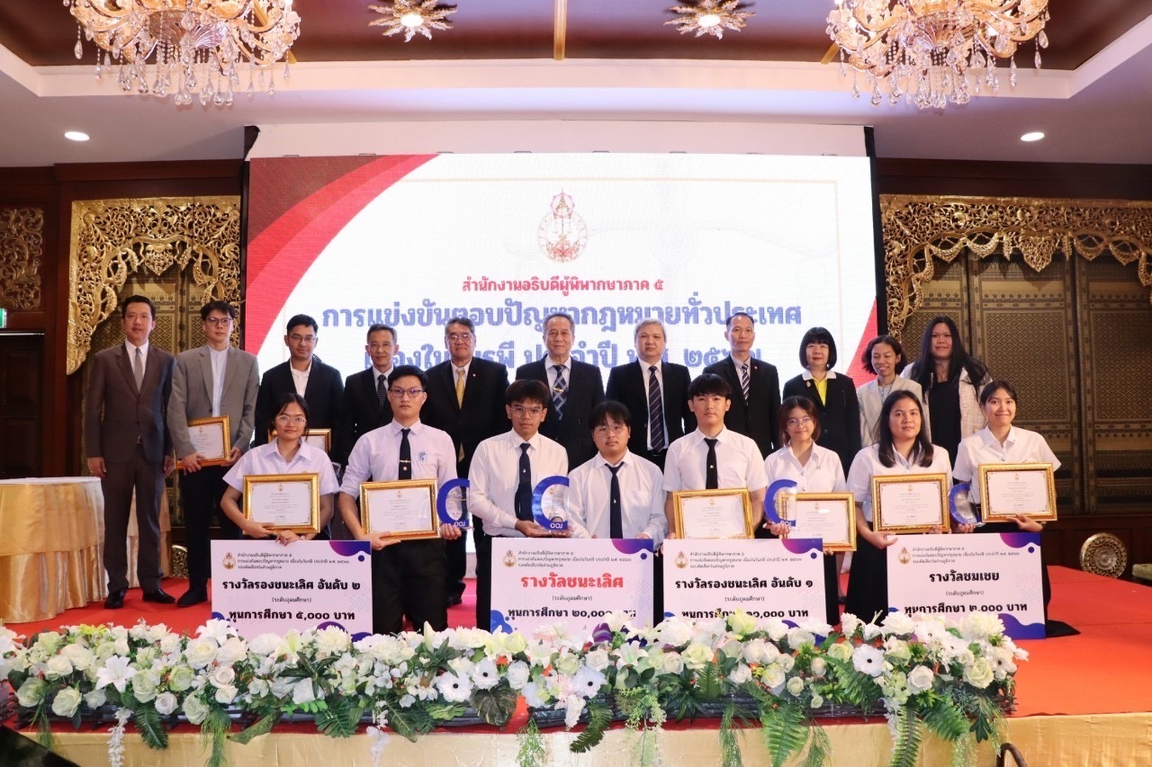 [Team B] Mr. Thanakun Sritip and Ms. Bunnakarin Meechana, Student ID received the 1st runner-up award and were selected to compete in “the 2024 Raphi Day Law Quiz Competition” at the Office of the Judiciary, Bangkok