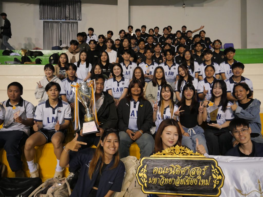 คณะนิติศาสตร์ มหาวิทยาลัยเชียงใหม่ ขอแสดงความยินดีและชื่นชมในความมุ่งมั่นทุ่มเทของนักศึกษาและบุคลากรทุกท่าน ที่ได้ร่วมกันสร้างชื่อเสียงและแสดงให้เห็นถึงศักยภาพด้านการกีฬาควบคู่ไปกับคุณธรรมนักกีฬาในระดับภูมิภาค